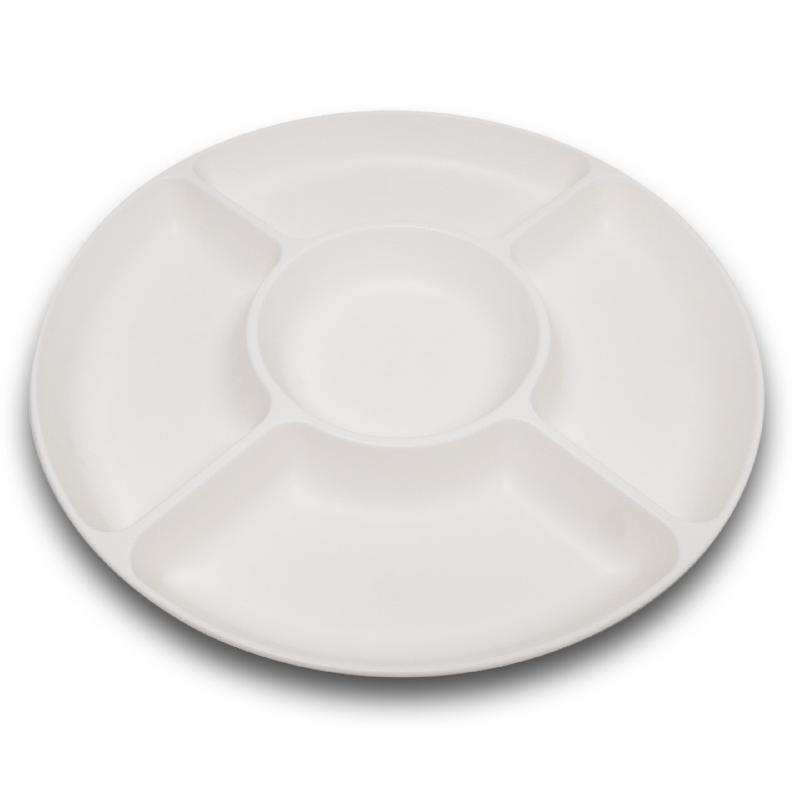 Snackfadet er på størrelse med en almindelig middagstallerken på ca. 25 cm i diameter. Det har fem rum og er støbt i ren polypropylen – en 100 % genanvendelig plasttype uden skidt kemi. Afrundingerne på fadet gør rengøring både i hånden og i opvaskemaskine meget nem. Fadet passer i tallerkenholderen i opvaskemaskinen og har ingen kanter, hvor vandet kan samle sig. Kvaliteten gør i øvrigt at fadet kommer helt tør ud af maskinen. Farven er en ensfarvet varm hvid, som gør det brugbart for hele familien og ikke kun for børn.